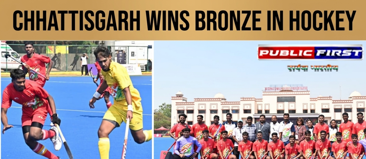 INDIA FIRST . RAIPUR . RITESH SAHU A proud moment for Chhattisgarh as the state’s men’s hockey team secured the bronze medal at the Khelo India Tribal Games. The match took place at the Sardar Vallabhbhai Patel International Hockey Stadium in Raipur. In the third-place playoff, Chhattisgarh defeated Madhya Pradesh 14-6, showcasing an aggressive game and excellent coordination. From the …