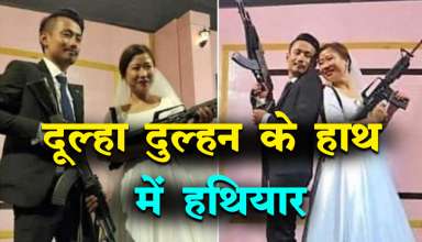 नगालैंड के विद्राेही नेता बाेहाेताे किबा के बेटे और बहू की शादी का रिसेप्शन इन दिनाें चर्चा का विषय बना हुआ है। नेता के बेटे-बहू शादी में एके-56 और एम16 असाॅल्ट राइफल दिखाते नजर आ रहे है Share on: