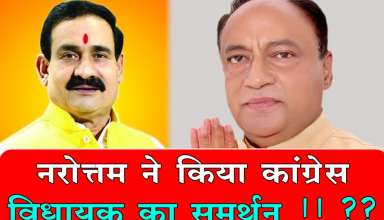 MP Politics नरोत्तम ने किया कांग्रेस विधायक का समर्थन !! ?? Share on: WhatsApp