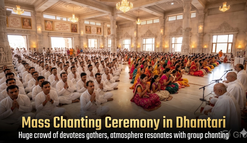 Dhamtari witnessed a remarkable display of devotion and spiritual energy today as the World Navkar Mantra Day was celebrated with great enthusiasm. At the Jain Sthanak Bhavan located in Sihawa Chowk, a large gathering of men, women, youth, and children from the Jain community came together for a collective chanting of the Navkar Mantra.