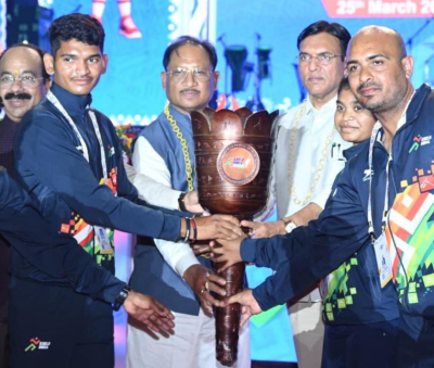 This sporting mega event is being organized from March 25 to April 3 in Raipur, Bastar and Surguja, where around 2,500 players from 30 States and Union Territories across the country are showcasing their talent in 9 sporting disciplines. The presence of Hockey India President Shri Dilip Tirkey and Olympic medalist Sushri Saikhom Mirabai Chanu added special prestige to the event.