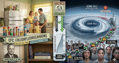 • Regarding Midgley Jr., Bill Bryson wrote: “No single organism in Earth’s history has done more damage to the planet.”Sources: NASA Ozone Watch, British Antarctic Survey (1985), UNEP Montreal Protocol Assessment, Bill Bryson’s *A Short History of Nearly Everything*