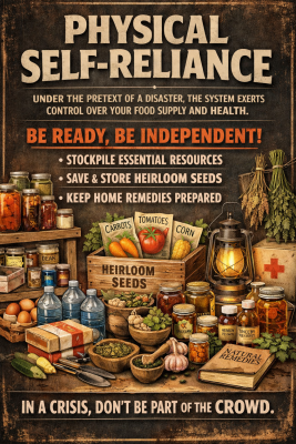 Under the pretext of a disaster, the system seeks to control your food supply and health. Keep a reserve of essential resources, stock up on seeds, and prepare home remedies so that—in the event of a crisis—you do not become just another face in the ‘crowd.’