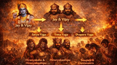 Jaya and Vijaya, the gatekeepers of Vishnu, were cursed by the sages. They would terrorize the common people in three lifetimes: